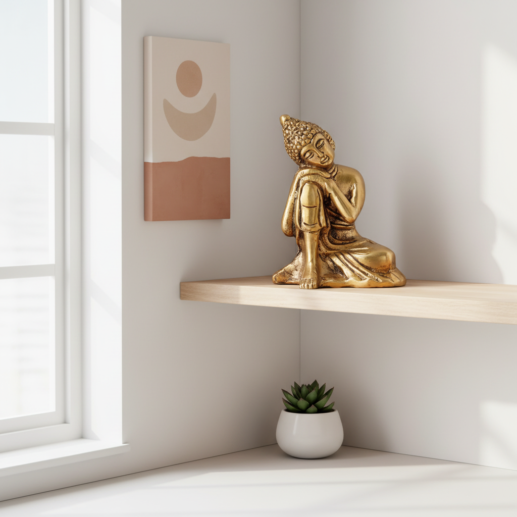 Brass Resting Buddha Meditation Statue for Peaceful Home Decor