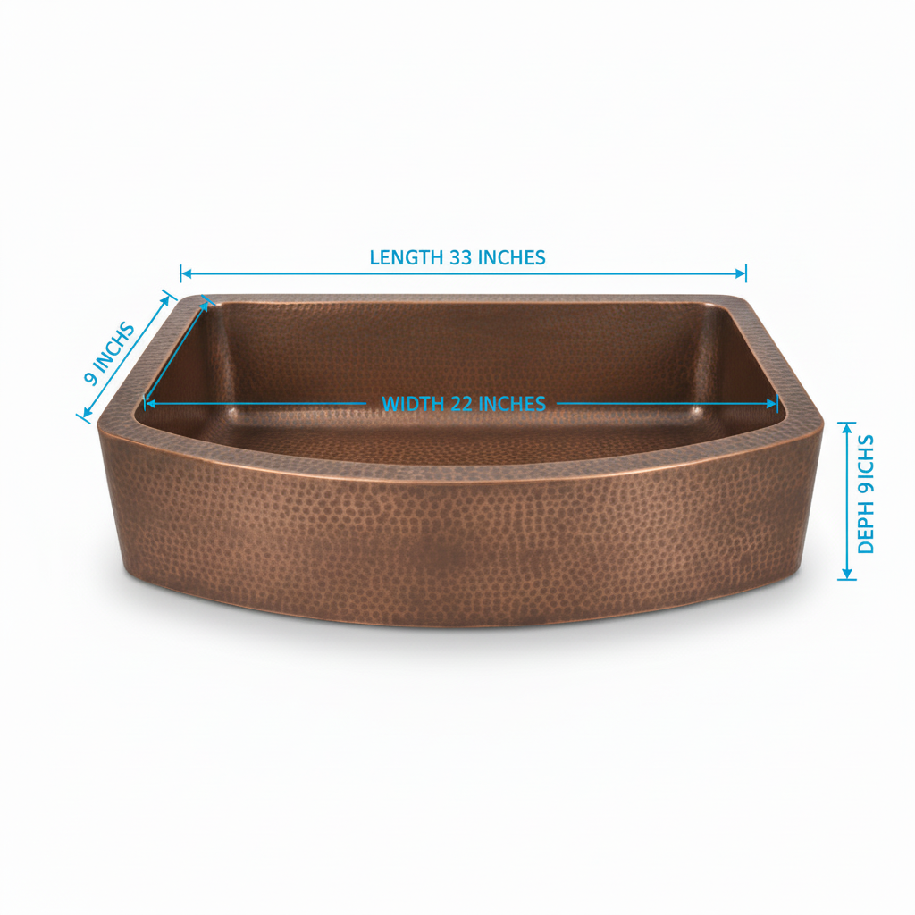 The Antique Finish Farmhouse Apron Copper Kitchen Sink is a premium handcrafted sink designed to be both a functional workhorse and a striking design feature in your kitchen. Crafted from heavy-duty 16-gauge pure copper, this sink delivers exceptional strength, resistance to corrosion, and long-lasting performance for everyday use.