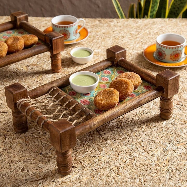 Handcrafted Wooden Serving Tray – Rectangular Cot/Khaat Style