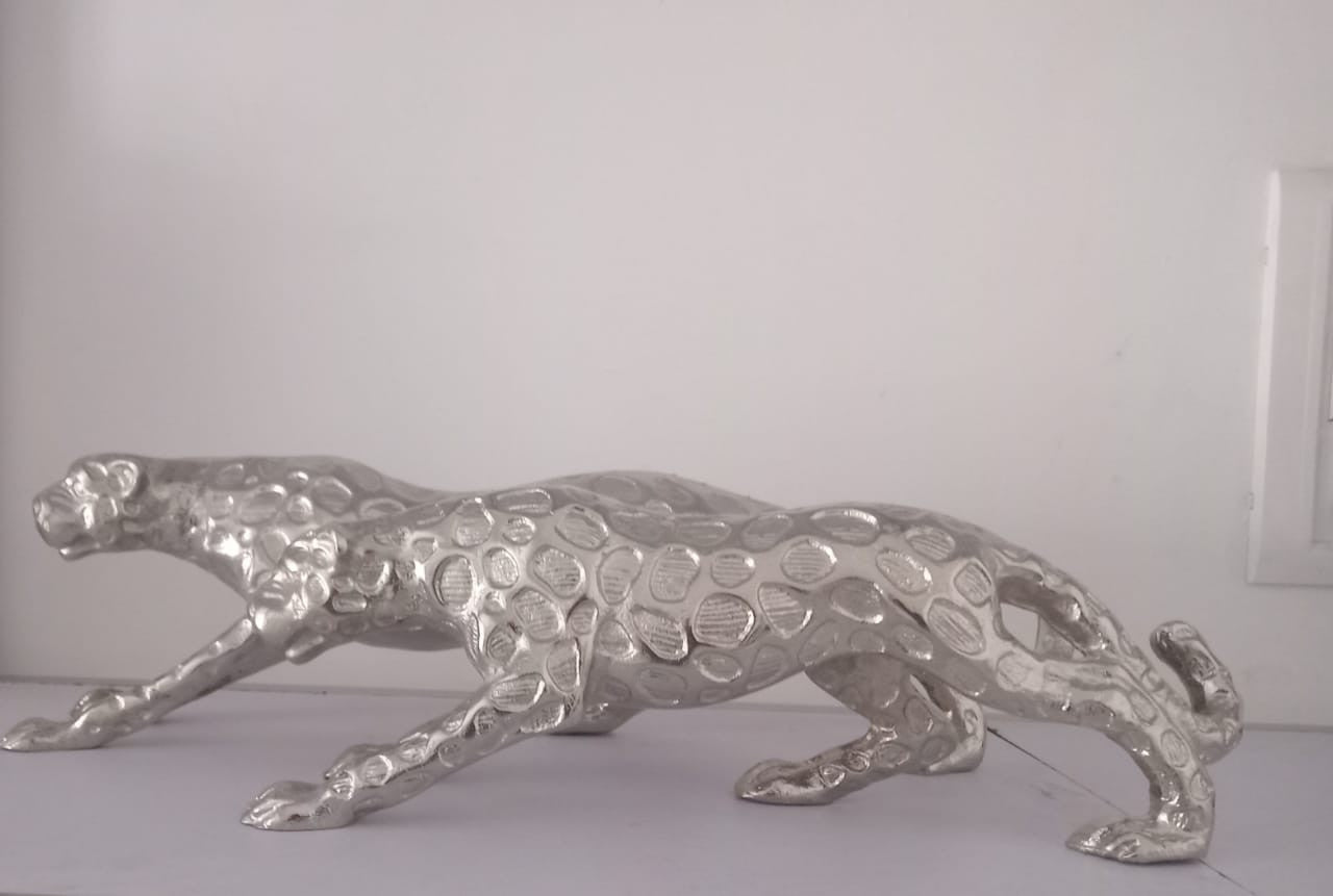 The panther’s eyes are bright and deep, reflecting its intelligence and agility. Its muscles are strong and well-toned, showcasing its strength and speed. The panther’s posture expresses its freedom and courage, as if it could attack at any moment. The silver/golden/antique finish enhances the panther’s beauty and power, allowing us to feel its speed and sense of independence. This statue inspires courage, agility, and freedom.