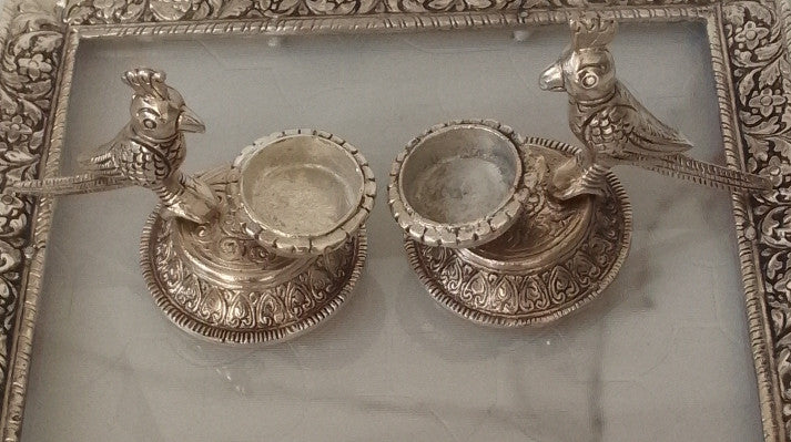 This Parrot Deepak with Plate is ideal for home décor or gifting, filling your space with divinity and serenity.